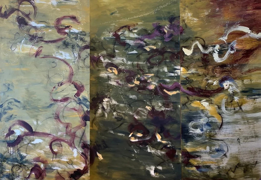 3-Panel series side by side by side, each 48” x 95.5” canvas, totaling 144” x 96”